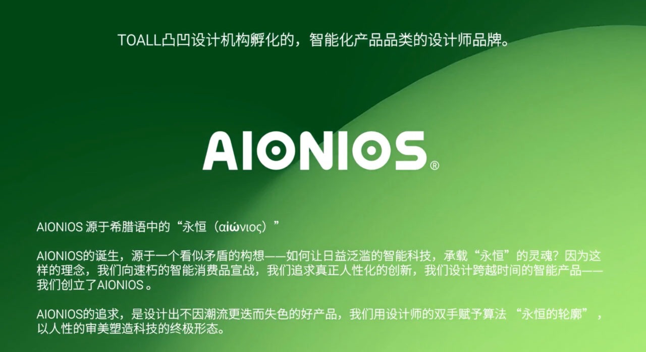 连振:AIONIOS源自希腊语的“永恒”,发音完全相同,寓意产品的长久与永恒。AIONIOS的品牌理念源于一个看似矛盾的构想:如何为日益泛滥的智能科技注入永恒的灵魂。