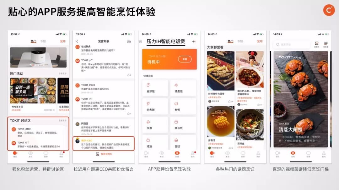 很少有品牌在APP的首页上上设置讨论区,我们希望跟用户拉近距离。在讨论区上面,大家会看到我们创始人杨总会亲自回复。我们希望能够听到用户的声音,了解用户的需求是什么。为了让“厨房小白”能够更好学习烹饪,我们每个烹饪步骤都是视频展示,让他们能够更清晰理解烹饪过程,帮助他们烹饪的更好。